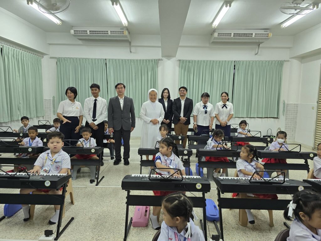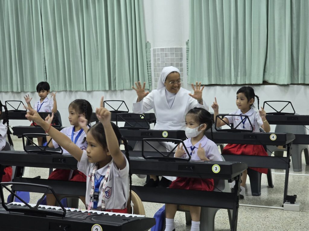 ผู้อำนวยการโรงเรียนเซนต์โยเซฟนครสวรรค์ ร่วมแลกเปลี่ยนเรียนรู้และให้กำลังใจนักเรียนในแต่ละห้องเรียนบรรยากาศเต็มไปด้วยรอยยิ้ม ความอบอุ่น และเสียงหัวเราะจากนักเรียน ที่ตั้งใจเรียนรู้และการพัฒนาทักษะการทำงานของสมองผ่านการเล่นดนตรี