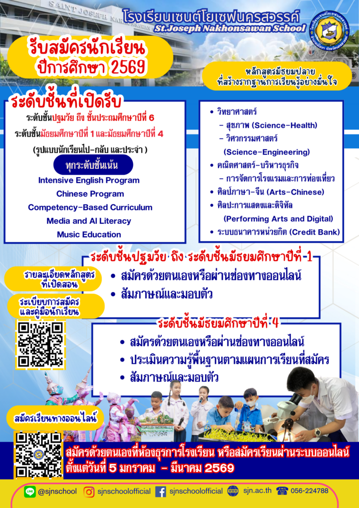 สมัครเรียนผ่านระบบออนไลน์ https://sjn.ac.th/