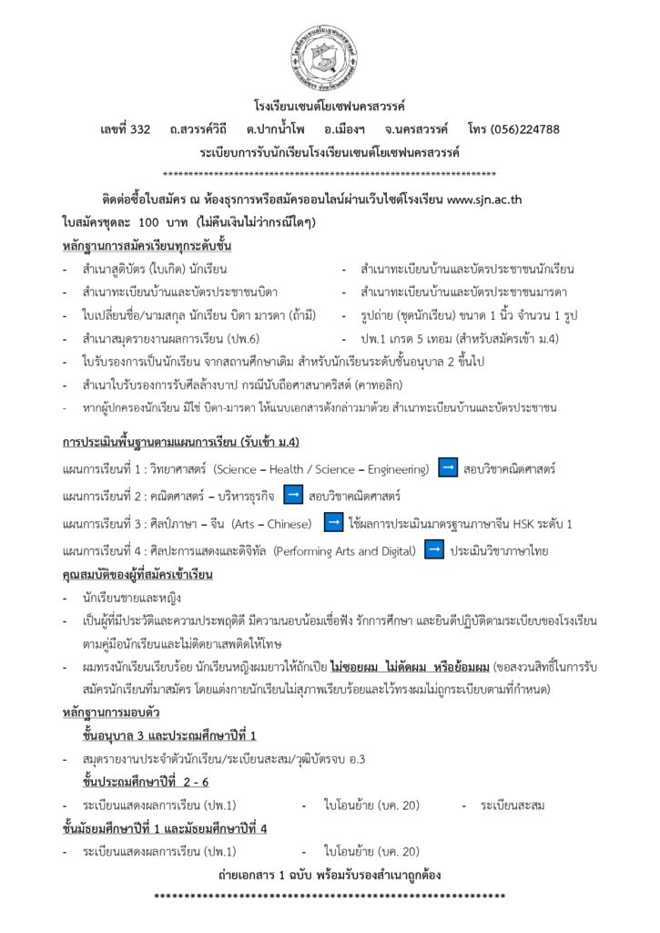 *โปรดทราบว่าทางโรงเรียนไม่มีนโยบายคืนค่าสมัครเรียนทุกกรณี *
